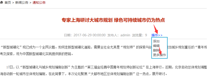 登陸----打開一篇內容-------點擊操作按鈕----更多操作-----登陸后臺