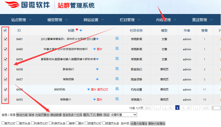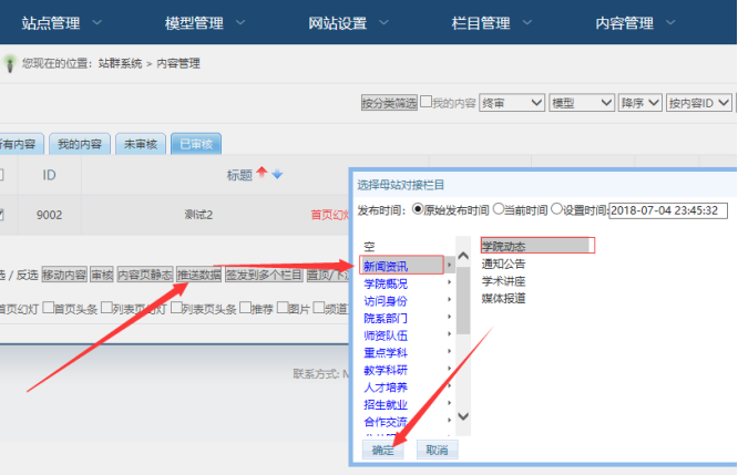 登陸分站后臺----點擊“內容管理”-------勾選所需的內容----推送數據