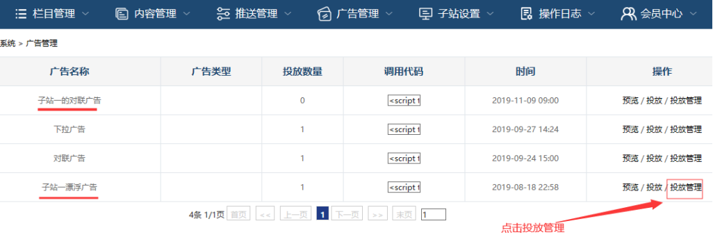 如果投放里面之前為0個廣告,就必須點擊此處投放;如果之前有投放過,點擊此處投放,那么之前的會作廢并要關閉: