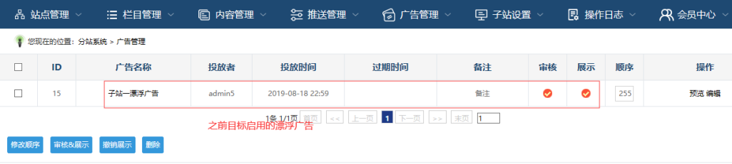 如果要關閉現在正在運行的漂浮廣告-----點擊“撤銷展示”------更新標簽緩存----靜態首頁即可