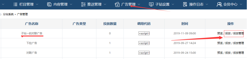 A:對這個對聯廣告進行“投放”和“投放管理”
