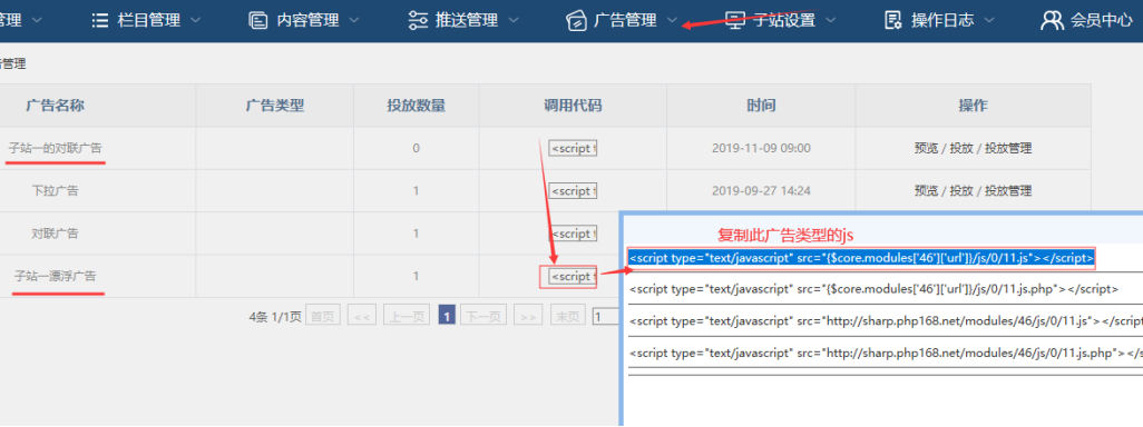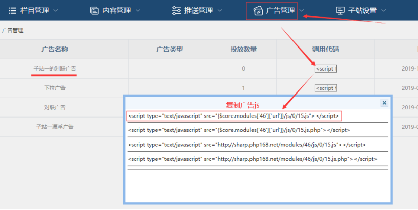 備注:這種js放置,只需要放置一次即可! 后續(xù)后臺可以開啟或關(guān)閉對應(yīng)的廣告。