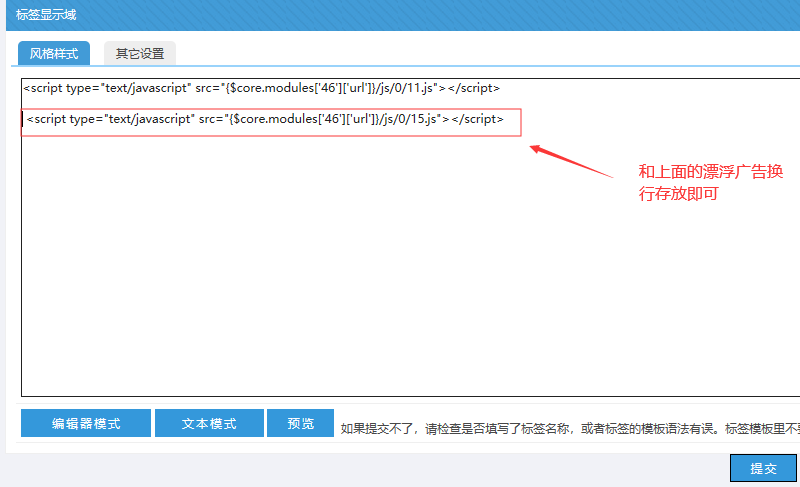 B:將js也存放在那個廣告標簽中(和漂浮廣告放一起)