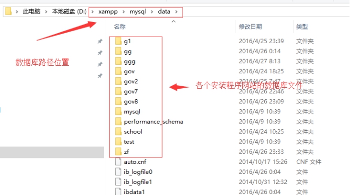 3、mysql數據庫的位置:D:\xampp\mysql\data