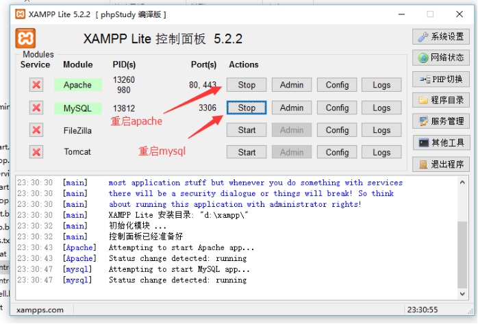 5、每次域名配置后,必須要重啟環境套件