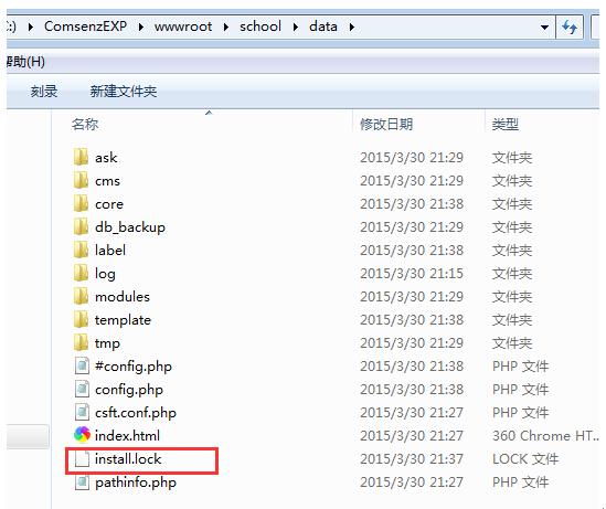 備注說(shuō)明:為了系統(tǒng)的安全,一般系統(tǒng)安裝后,會(huì)自動(dòng)刪除根目錄下的install.php安裝文件;同時(shí)也會(huì)在data下自動(dòng)生成一個(gè)鎖定文件install.lock和其他緩存文件。所以需要重新安裝的時(shí)候,處理上面步驟即可。